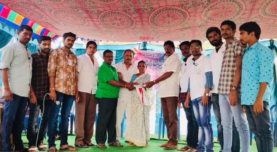 ( 3.)నల్లి నర్సమ్మ (ఇరుసుమండ)ఈమది పేద కుటుంబం మరియు ఇంటికి కరెంట్ కూడా లేని పరిస్థితిలో ఉన్న ఈ కుటుంబాన్ని ఆదుకోవాలి అనే ఉదేశ్యం తో 5000 రూపాయల చెక్కును అందించారు.