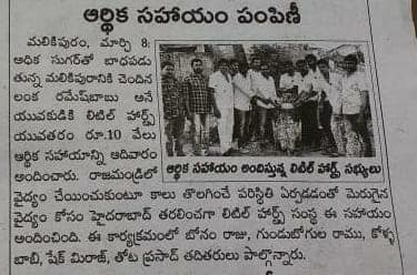 నిన్న (08-03-2020) జరిగిన లిటిల్ హార్ట్స్35 వ సేవా కార్యక్రమాల కోసం ప్రింట్ మీడియా లో..
